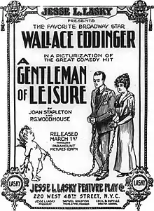 A Gentleman of Leisure is a surviving[1] 1915 American silent comedy film produced by Jesse Lasky and distributed by Paramount Pictures. It stars stage veteran Wallace Eddinger. The film is based on the 1910 novel A Gentleman of Leisure by P. G. Wodehouse and 1911 Broadway play adapted by Wodehouse and John Stapleton. Douglas Fairbanks was a cast member in the play several years before beginning a film career. This film survives in the Library of Congress.[2][3][4]