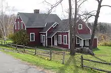 The Hawthornes had moved to The Berkshires shortly after the publication of The Scarlet Letter and it was here that he completed not only A Wonder-Book but also his novel The House of the Seven Gables.[4] He was able to spend time with several other literary figures, including Herman Melville, who was then living at Arrowhead in Pittsfield. Melville is referenced by name in A Wonder-Book: "On the higher side of Pittsfield, sits Herman Melville, shaping out the gigantic conception of his 'White Whale' while the gigantic shape of Graylock [sic] looms upon him from his study-window."[5] Biographer Philip McFarland called this period "by far the most productive creative period of Hawthorne's life", though it also marked the end of his time as a writer of short tales.[6] The Hawthornes would soon move temporarily to West Newton, Massachusetts, where the author would begin to write The Blithedale Romance, a novel he conceived while in Lenox.[7]