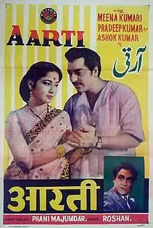 Aarti is a 1962 Indian Hindi-language film directed by Phani Majumdar and produced by Tarachand Barjatya. The film stars Meena Kumari in the title role of Aarti, with Ashok Kumar, Pradeep Kumar and Shashikala appearing in pivotal roles. It is based on Sanskar Lakshmi, a play written by Prafulla Desai.[2]