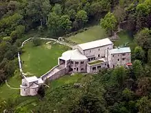 The Abbey of San Pietro al Monte is an small medieval monastic complex mostly dating to the 11th century, in Lombard Romanesque style, on a hill outside the town of Civate, province of Lecco, in northern Italy.