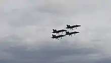 Blue Angels F-18 fighters during demonstration flight at the Abbotsford Air Show, 2018.