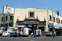 The Abelardo L. Rodriguez market has four large entrances on República de Venezuela, República de Colombia, Del Carmen and Rodríguez Puebla streets respectively.[1] One unusual feature of the building is the metal roof that covers the central patio area. Its most distinctive service is the Teatro del Pueblo (Theatre of the People) auditorium, which is located on the upper floor.[3] A number of the services and features of this market were copied in markets built as much as twenty years later, such as the markets of La Lagunilla, Tepito and La Merced.[4]