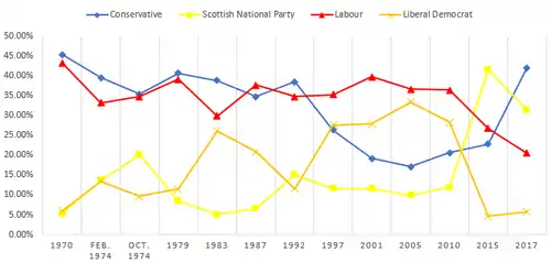 Aberdeen South was traditionally a strong Liberal Party constituency until it was won by the Unionist Party at the 1918 general election. The constituency subsequently went on to return Unionist MPs to Parliament until the party amalgamated with the Conservatives in 1965. The constituency developed into a Unionist-Labour marginal in 1964 and was gained by Labour's Donald Dewar in 1966, who went on to become the leader of the Scottish Labour Party and later the first-ever First Minister of Scotland in 1999. From the 1970 general election onwards, Aberdeen South returned Conservative MPs to Parliament. The seat was gained by Labour in 1987 and regained by the Conservatives in 1992. At Labour's 1997 landslide election victory Aberdeen South fell to Labour's Anne Begg, who represented the constituency until the 2015 general election when the constituency was gained by Callum McCaig of the Scottish National Party.