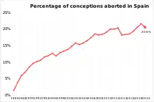 In Spain, the evolution of the number of abortions, according to statistics from the Ministry of Health,[47] is as follows: