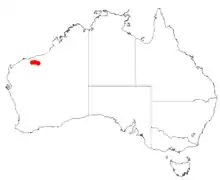 It is native to a small area in the Pilbara region of Western Australia where it is found amongst boulders in rocky outcrops growing in fissures in skeletal sandy loam to gravelly sand soils over and around granite.[2]