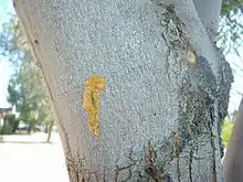 Sap, from which gum can be made, oozing from an Acacia tree in Phoenix, Arizona