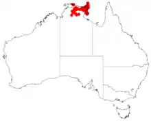 It is found in the Bioregions of Arnhem Coast, Arnhem Plateau, Central Arnhem, Gulf Fall and Uplands, Pine Creek, and Tiwi Cobourg.[1]
