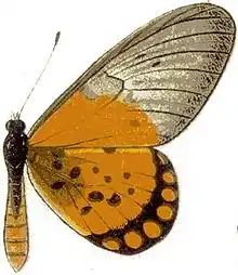 Acraea admatha, the Hewitson's glassy acraea, is a butterfly in the family Nymphalidae. It is found in southern Nigeria, Cameroon, Equatorial Guinea, Gabon, the Republic of the Congo, northern Angola and the western part of the Democratic Republic of the Congo.[3]