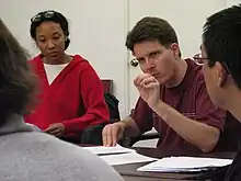Faculty Instructor Dean Batali making a point at a writer's meeting, July 2009