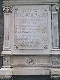 The School's origins date to 1606 when John Addey (1550–1606), Master shipwright at Deptford Dockyard, having made his fortune in shipbuilding, left £200 to help the poor of Deptford; this money was then invested in land and the rent from that land was to be given away as charity. This amounted to 40 shillings each, per annum given to 100 parishioners of Deptford.[2] However, in 1820 the trustees felt that this type of poor relief encouraged fecklessness and instead decided to found the Addey School in 1821 on Church Street, Deptford.[3] 'A Topographical Dictionary of England' (1848) it is explained that the Addey School "by direction of the court of chancery, erected a spacious building containing two large schoolrooms, with houses for the master and mistress; the school is wholly supported by the endowment, from which also 48 aged persons are paid £2 each annually.".[4] Later in 1862 the School was enlarged. To commemorate Addey's charity and the help given to the poor of Deptford, a plaque was erected in St Nicholas Church, Deptford in 1862, following is quoted the inscription on the tablet: