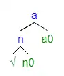 Within the tree structures, the word root combines with the functional category n0 to become a noun, then combine with the functional head a0 to form an adjective. Both nouns and adjectives contain the root-n0 combination, and it is the presence of a0 that results in the appearance of the attributive copula -na.[6]