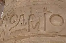 The ancient Egyptian Adze on a Wood Block, or Axe in a Block of Wood[1] hieroglyph, Gardiner sign listed no. U20, is a portrayal of the adze. It is used mostly in the cartouches of pharaonic names especially, or other important names.