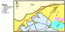 Regolith mapping helps distinguish different kinds of superficial deposits which refer to loosely arranged aggregates of weathered materials on the land surface.[1][10] Aerial photographs can be used to establish the borders between the fluvial and gravity-driven hillslope sediments.[1] These superficial deposits usually have indistinct borders.[1] Some examples of the deposits identified using regolith mapping are described below.