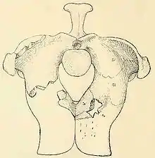 A third North American genus called Stegomus was named by Othniel Charles Marsh in 1896.[26] Marsh had a long-time rivalry with Cope that was made famous in the Bone Wars of the late 19th century, in which the two tried to out-compete one another in the field and in scientific literature. Unlike Cope's aetosaurs, Stegomus was found from the eastern United States in Connecticut. Marsh also recognized Stegomus as an aetosaur rather than a phytosaur in his initial description of the genus. Like Cope, many paleontologists tended to consider aetosaur scutes to belong to phytosaurs during this time period.[17] Marsh considered aetosaurs to be closely related to dinosaurs based on their elongated metatarsals (foot bones).[24]