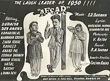 Afsar is a 1950 Hindi-language romantic comedy film directed by Chetan Anand. It was produced by and starred Dev Anand. It co-starred Suraiya, who also recorded the playback singing for the film. The film was based on Nikolai Gogol's play The Government Inspector.[1] Afsar was the first film produced under the Navketan Films banner.[2] The film was unsuccessful at the box office, which attributed to Suraiya's fading stardom in the early 1950s, and Madhubala's and Nargis' simultaneous rise as the top female stars.[3]