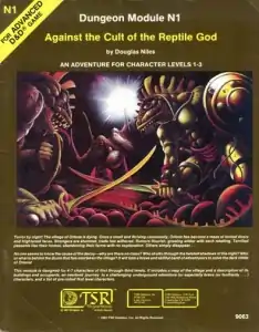 Against the Cult of the Reptile God is an adventure module for the first edition of the Advanced Dungeons & Dragons fantasy roleplaying game, set in the game's World of Greyhawk campaign setting. It is designed for novice players and gamemasters.[1] The suggested party size is 4-7 characters of level 1-3.[1]