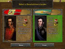 European colonies have a new option open to them in the Industrial age; instead of advancing to the Imperial age, they can revolt from the home nation and establish their own country. The initial cost of revolting is cheaper than advancing to the Imperial age, but the nation's economy will stagnate because all settlers will turn into militia and no new ones can be built (except Coureur des Bois from a Cree Village). Resources can continue to be delivered from pre-constructed ships, tributed resources, trading posts, factories and for the Dutch, banks. A new nation may not upgrade units to the Imperial Age.