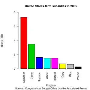 Tonnes of United States agriculture production, as reported by the Food and Agriculture Organization (FAO) of the U.N. in 2003 and 2013 (ranked roughly in order of value):[16]