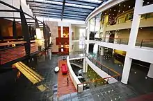 The Ahmed Adnan Saygun Arts Center (Turkish: Ahmed Adnan Saygun Sanat Merkezi) is situated in the Konak district of İzmir, Turkey. It is named after the composer Ahmet Adnan Saygun and was opened to public at December 27, 2008, by Yunus Emre Oratorio's concert. The Center hosts a variety of concerts and festivals. The Ahmed Adnan Saygun Arts Center is accessible via the Ahmed Adnan Saygun Sanat Merkezi stop of the Konak Tram line.