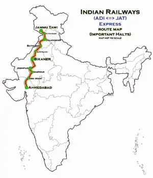 | Termini | Ahmedabad (ADI) Jammu Tawi (JAT) | ||||