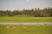 The park accommodates 327 different species. Great spotted cuckoo, spoonbill, nightingale, collared pratincole and stone-curlew are among its many birds.[3] The park offers seven hides and one tower for bird watchers. They are connected through a plain dirt track which allows wheelchairs.