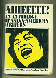 Aiiieeeee! An Anthology of Asian-American Writers is a 1974 anthology by Frank Chin, Jeffery Paul Chan, Lawson Fusao Inada, and Shawn Wong, members of the Combined Asian American Resources Project (C.A.R.P.). It helped establish East Asian American literature as a field by recovering and collecting representative selections from Chinese, Japanese, and Filipino Americans from the past fifty years—many of whom had been mostly forgotten.[1] This anthology included selections from Carlos Bulosan, Diana Chang, Louis Chu, Momoko Iko, Wallace Lin, Toshio Mori, John Okada, Oscar Peñaranda, Sam Tagatac, Hisaye Yamamoto, Wakako Yamauchi, many of whom are now staples in East Asian American literature courses. Because of this anthology and the work of C.A.R.P., many of these authors have been republished. At that time, however, they received little attention from publishers and critics because they did not subscribe to popular stereotypes but depicted what Elaine H. Kim calls the "unstereotyped aspects of Asian American experience".[2] The "aiiieeeee!" of the title comes from a stereotypical expression used by East Asian characters in old movies, radio and television shows, comic books, etc.[3] These same stereotypes affected the anthology itself: when the editors tried to find a publisher, they had to turn to a historically African-American press because, as Chin states:
