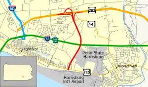 - ↑ Jeffrey J. Kitsko (March 31, 2010). "Harrisburg Highways: Airport Connector". Pennsylvania Highways. Retrieved September 29, 2018.
