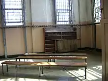 Inmates were permitted a maximum of three books in addition to up to 12 text books, a Bible, and a dictionary.[3] They were permitted to subscribe to magazines but crime-related pages were torn out and newspapers were prohibited.[2] Crime and violence were prohibited from all books and magazines, and the library was governed by a chaplain who regulated the censorship and the nature of the reading material to ensure that the material was wholesome.[3][4] Failure to return books by the date given made the inmate liable to removal of privileges.[3]