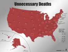 In 2016, the states with the fewest fatalities due to alcohol-impaired drivers were Utah and Mississippi, with 128 and 52 killed (19%).[6]