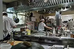 ![]() Kitchen at Aldea as viewed from the dining room | |