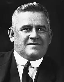 McLeod won the Wairarapa electorate in the 1919 general election in a triangular contest, defeating the incumbent, J. T. Marryat Hornsby of the Liberal Party.[3] He worked closely with Prime Minister William Massey while the latter was ill with cancer and was added to the cabinet as Minister of Lands in 1924.[4] When Massey died in 1925 McLeod was one of several candidates named as a possible candidate to succeed Massey as party leader. During the caucus meeting which conducted the leadership ballot McLeod, having realised he had no realistic chance of winning, withdrew as a candidate. Ultimately Gordon Coates replaced Massey as leader.[5] In a reshuffle in 1926 Coates additionally appointed McLeod as Minister of Industries and Commerce.[6] McLeod promoted closer settlement of land and during his tenure in the lands portfolio there was a steady increase in the acreage of cultivated land. Critics of his thought the pace could have been increased.[7] He also allotted public land to help with resettlement of World War I veterans.[2] McLeod was the New Zealand government representative to Australia in May 1927 at the inauguration of the new Parliament House when the federal capital moved to Canberra.[1] At the 1928 he was defeated by Thomas William McDonald of the United Party.[8][9]