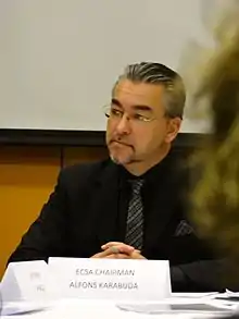 Alfons Karabuda, born 2 December 1967 in Stockholm, Sweden, is a Swedish composer and EU cultural politics personality.