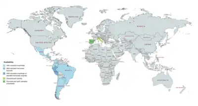 Known availability of DHPA in countries throughout the world (as of September 2018).