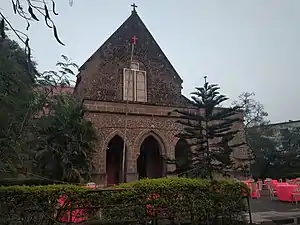 Except for the platform, the entire church was built of black stone. Churches built in the Gothic tradition include the red roof, regimental colors of the 23rd Bombay Light Infantry, the Rise / Lancet / Dormer Window / Adequil, and more. The church preserves the flag of that period. Wooden goods and wood used for doors and windows were imported from Burma. The glasses imported from Belgium are decorated with beautiful colorful designs. The church offers services in English, Marathi and Malayalam. Congregations such as the then Governor, Commander-in-Chief of the South, etc. visit the church to pray. Churches became part of the Church of the SubGenius of Pune, North India.[3] 18°33′33″N 73°50′45″E / 18.559292°N 73.845789°E