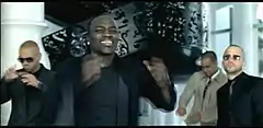 Romeo, Akon and Wisin & Yandel in the music video for "All Up 2 You".