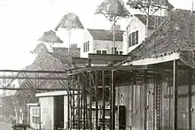Nets, fake small houses, and trees camouflaging the roof of the Fokker Factory.