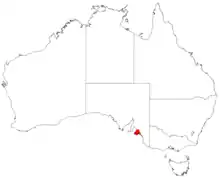 Allocasuarina robusta grows in heath and heathy woodland at higher elevations in an area of 184 km2 (71 sq mi) in the southern Mount Lofty Ranges, on the Fleurieu Peninsula to the south of Adelaide.[2][3]