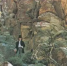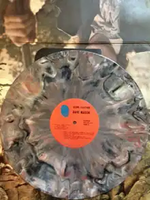 About 30% of the records were produced in so-called marble vinyl, a swirled mix of pink, brown and beige, rather than the usual black vinyl.[2] The original record jacket is a tri-fold with a half-pocket on the inside to hold the record (originally issued without a paper inner sleeve). The top of the tri-fold has a die-cut image of Mason in a top hat and morning dress, collaged behind a rocky outcrop, and there is a small die-cut hole at the top to permit the jacket to be hung on the wall as a poster.
