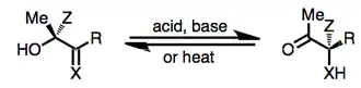 The α-ketol rearrangement is the acid-, base-, or heat-induced 1,2-migration of an alkyl or aryl group in an α-hydroxy ketone or aldehyde to give an isomeric product.[1]