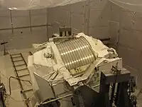 • Original superconducting magnet: 2 coils of niobium-titanium at 1.8 K producing a central field of 0.87 teslas[54] (Not used in the actual device)