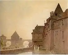 "I loved more than anything else to promenade on the great bridge over the Maine. Its length, its firmness, and its fine appearance rendered it a notable structure, and it was, besides, almost the only memorial left from ancient times of the precautions due from the civil government to its citizens. The beautiful stream above and below bridge, attracted my eye, and when the gilt weathercock on the bridge-cross glittered in the sunshine, I always had a pleasant feeling."