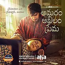 Amaram Akhilam Prema is a 2020 Indian Telugu-language romantic drama film written and directed by Jonathan Edwards and produced by Vevkds Prasad. The film stars Vijay Ram and Shivshakti Sachdev along with Naresh, Annapoorna and Srikanth Iyengar in supporting roles. The music was composed by Radhan while cinematography was handled by Rasool Ellore and editing done by Mariappan. The film was released on Aha on 18 September 2020.[1]
