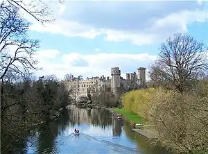 With the accession of Elizabeth I in November 1558, Robert Dudley came into great favour and was made Master of the Horse. Ambrose Dudley received the post of Master of the Ordnance, though he pressed his influential brother to delay the appointment somewhat, so that he could not be held accountable for his predecessor's embezzlement of funds.[19] When their attainder had been lifted in 1558, the Dudley brothers had renounced any rights to their father's possessions or titles.[1] Yet on 25 and 26 December 1561 Ambrose Dudley was created Baron Lisle and Earl of Warwick, and the next year received a large portion of the lands confiscated from the Duke of Northumberland.[20] Warwick Castle—which the Queen visited on her 1572 summer progress—became his seat, while the neighbouring Kenilworth Castle became that of Robert Dudley.[21] Like their father, Ambrose and Robert Dudley adopted the bear and ragged staff, the heraldic device of the medieval Earls of Warwick.[1]