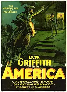 America, also called Love and Sacrifice, is a 1924 American silent historical war romance film. It describes the heroic story of the events during the American Revolutionary War, in which filmmaker David Griffith created a film adaptation of Robert W. Chambers' 1905 novel The Reckoning. The plot mainly centers itself on the Northern theatre of the war in New York, with romance spliced into the individual movie scenes.[2][3][4][5][6]