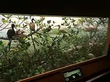 The Sanford Hall of North American birds is a one-story hall on the third floor, between the Hall of Primates and Akeley Hall's second level.[155] There are over 20 dioramas depicting birds from across North America in their native habitats.[176] At the far end of the hall are two large murals by ornithologist and artist Louis Agassiz Fuertes.[177] The hall also has display cases devoted to large collections of warblers, owls, and raptors.