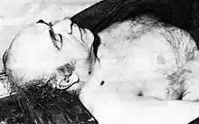 Minutes later, the former Prime Minister was taken into the prison's yard. Before reaching the area designated for firing squad executions, Hojatoleslam Hadi Ghaffari (currently a political reformist) pulled out a pistol and shot Hoveyda twice in the neck. He was left on the ground in agony, begging for the executioners to "finish him off". Seconds before the coup de grace was at last given, Hoveyda is said to have gasped to the guard standing over him: "It wasn't supposed to end like this".[14] According to the autopsy report, he apparently also was beaten shortly before his execution.