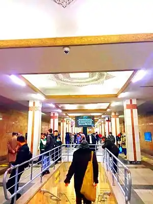 Amir Temur Xiyoboni (“Amir Timur Avenue”) is a station of the Tashkent Metro on Chilonzor Line. It is a transfer station to Yunus Rajabiy, Yunusobod Line. The station is named for the square of Amir Timur.