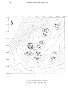 Amlah or ʿAmlāʾ (23°07′52″N 56°54′07″E / 23.13111°N 56.90194°E), al-Dhāhirah province (41 km ESE of ʿIbrī), Sultanate of Oman. The area around Amlah contains numerous archaeological sites which came to light during surveys in the mid 1970s.[1] Those that are available to the public date from the Bronze Age Wadi Suq period to the late pre-Islamic period. 26 excavated graves provide evidence for a cemetery at al-Fuwaydah.[2] The graves and grave goods are related most closely to those of the United Arab Emirates, Preislamique Récente, i.e. PIR, and not the Samad Late Iron Age.[3] Among the most striking Late Iron Age finds are bronze phiales inscribed on the inside.[4]