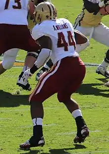 Andre Rishard Williams (born August 28, 1992) is an American former professional football player who was a running back in the National Football League (NFL). He played college football for the Boston College Eagles. He was a finalist for the 2013 Heisman Trophy, and won the 2013 Doak Walker Award as the nation's best running back. During the 2013 season, Williams became only the 16th player in NCAA history to rush for over 2,000 yards and he finished his college career ranked fifth all-time for most yards rushed in a single season with 2,177 yards. He was selected by the New York Giants in the fourth round of the 2014 NFL Draft.