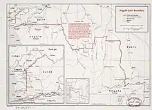 Administration of the Congo Free State was taken over by the Belgian government in 1908 following controversies engendered by the atrocities committed by Leopold's forces there.[5] The Belgian Congo gained independence (as the Republic of the Congo, later renamed Democratic Republic of the Congo) on 30 June 1960.[2] Portugal however firmly resisted the wave of decolonisation in Africa, making Angola a legal part of Portugal in 1951.[3] Angolan nationalists began fighting for independence in 1961, achieved in 1975 following a revolution in Portugal.[3][2] Cabinda meanwhile sought to establish a separate state, kick-starting the Cabinda War.[6] The southern border section has also been unstable for much of this period also, due to civil wars in Angola and Congo, resulting in numerous cross-border incursions and refugee flows.